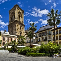 Los vecinos paseando, la vegetación que da color al escenario y la catedral de fondo, decidida a ser testigo de todo lo que pasa; llenan de matices esta plaza por la que al tiempo se le olvida pasar.