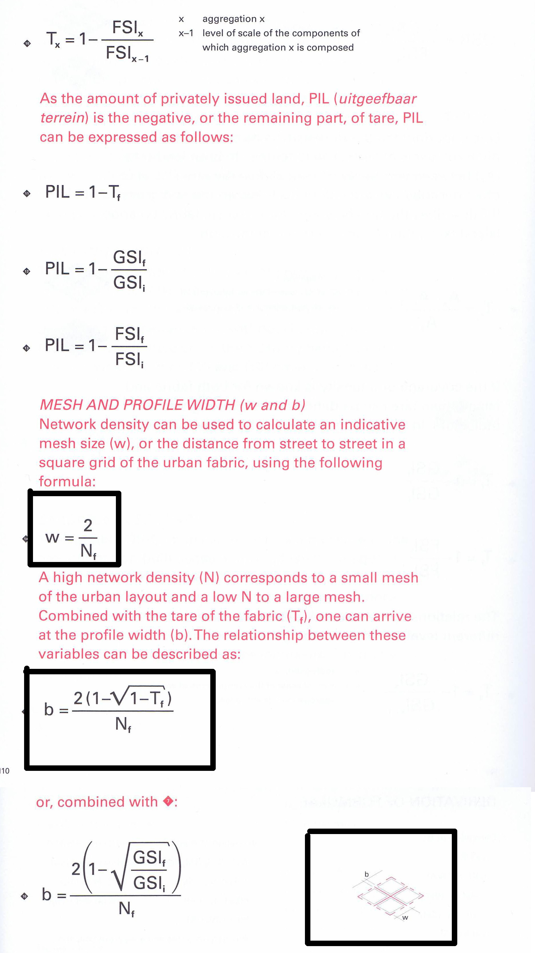 Calibre de malla (b: profile width). Anchura media del viario. Medido en m.