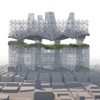 Vivimos en el 2289. En una sociedad donde la vida en el aire es cada vez más frecuente, aviones en la vida diaria de las personas, grandes rascacielos que se elevan hasta 300 pisos. Río de Janeiro ve su población duplicada en un tiempo mínimo. ¿Cómo enfrentarnos a tal problema sin obtener una ciudad de escala desmesurada pensada más para los dioses más que para los humanos? Rio de Janeiro eleva sus edificios existentes y traslada una copia de estos a una cota superior. Si la población se duplica, la ciudad se duplica. Así pues el problema de la densidad queda resuelto sin necesidad de crear toda una nueva ciudad que olvide la preexistente, si no valorándola y manteniendo su identidad. Creciendo verticalmente para no seguir invadiendo territorio, aumentando distancias y haciéndola menos humana. Pero Río es una ciudad del futuro que busca ir más allá y no limitarse a resolver el problema de densidad a nivel de edificios. Los espacios para la vida en común también deben de ser aumentados con una mejora de sus características. Con la elevación de los inmuebles se busca que el tránsito y la vida comunitaria sucedan a nivel de la tierra, vinculándonos al territorio, la topografía y lo que fueran las raíces de la ciudad que ahora nos sirve de techo y da cobijo. Los espacios generados bajos los edificios serán en su mayoría para el transporte por ofrecer peor calidad de soleamiento y las avenidas y calles quedarán libres para las personas. Nueva vegetación oxigenará la ciudad y hará más acogedoras aquellas avenidas que con la retirada del tráfico queden desangeladas. Para minimizar la distancia creada con la llegada de la ciudad vertical entre los espacios comunes y las personas se creará un nivel intermedio en las cubiertas de los edificio existentes elevados. En ellas aparecerán espacios comunes, nuevos usos, vegetación que favorezca la sostenibilidad… Todo ello conectado por núcleos verticales de comunicación y pasarelas.