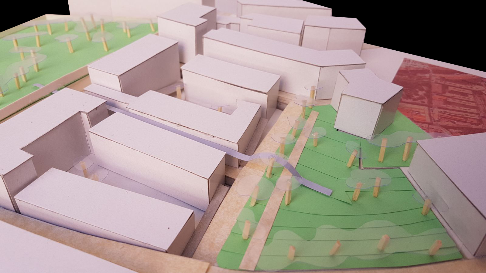 Fotografía en perspectiva de la maqueta del barrio de "La Sang", Alcoy.