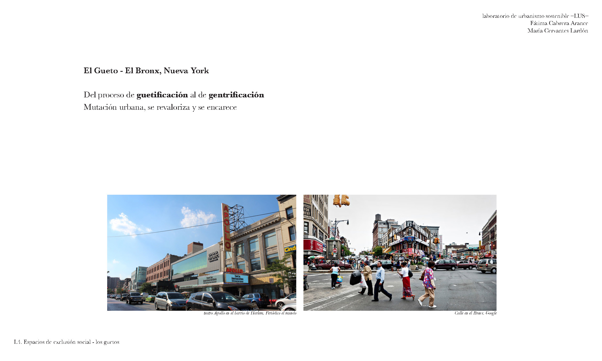 Análisis de los espacios de exclusión en las ciudades de París, Nueva York y Santiago de Chile. Tres espacios con evoluciones distintas desde la marginación (caso del distrito de Saint Dennis en París); la gentrificación (caso del barrio del Bronx en Nueva York), a espacios de difusión de una identidad y cultura propia como reclamo turístico (barrio Yungay, Santiago de Chile).