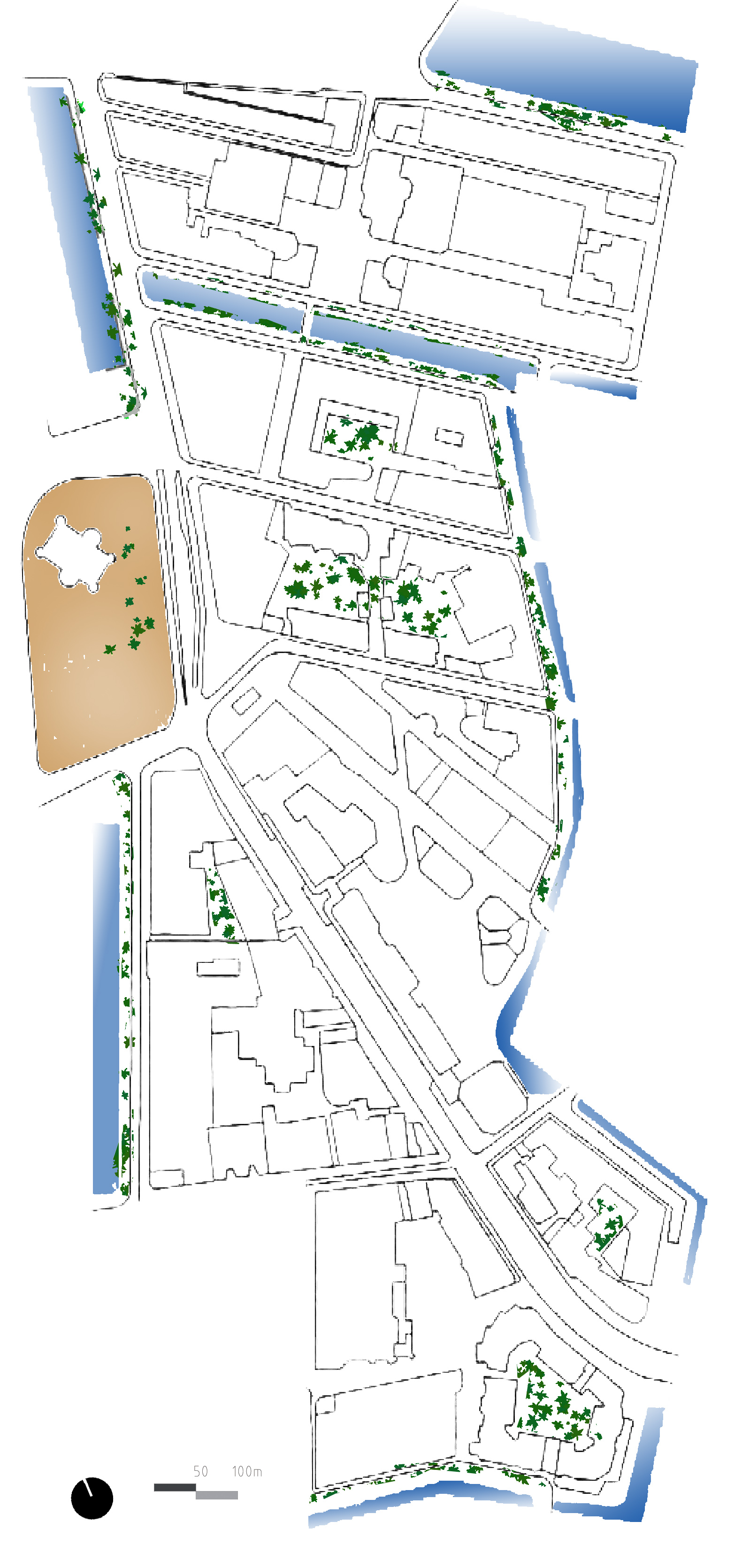 Entorno próximo a los usos: vegetación, plazas y agua.
