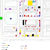en las cuales existe una concentración de los mismos llegando incluso a monopolizar algunas calles. Tambien los comercios monopolizan algunas zonas, variando desde una gran superficie que ocupa el edificio entero a bajos comerciales. Usos como la educación tienen una menor importancia en la zona, y solamente está el Archivo Nacional como edificio singular, tras la plaza.