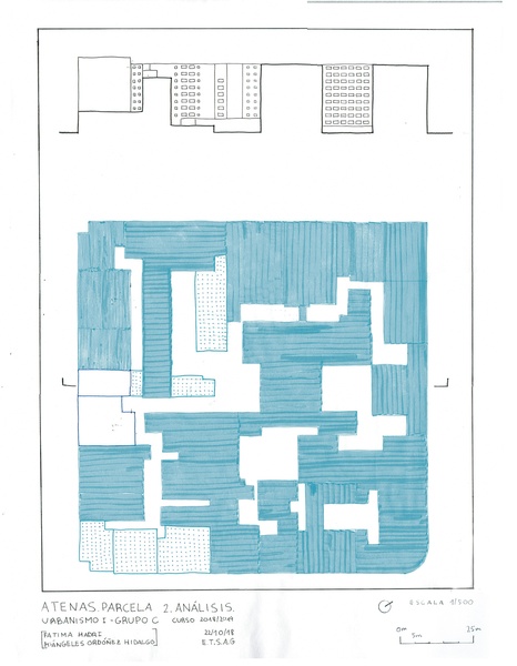 Una vez visto este trabajo, creo que queda muy claro por la forma de representar, las diferentes tipologías de arquitectura en la ciudad, además es muy interesante, porque sin necesidad de explicar nada, se entiende perfectamente cómo ha ido creciendo la ciudad y las distintas arquitecturas que van surgiendo. Sin embargo creo que habría sido necesario indicar en el plano general, de una manera más clara, cuáles son las tres parcelas a analizar, ya que hay algunos edificios marcados de negro pero no veo la relación. Las cinco edificaciones propuestas son muy interesantes y se ven de una manera muy clara y limpia, tanto en planta como en sección; sin embargo echo en falta una relación con el contexto de la ciudad, para así ver cómo influiría.