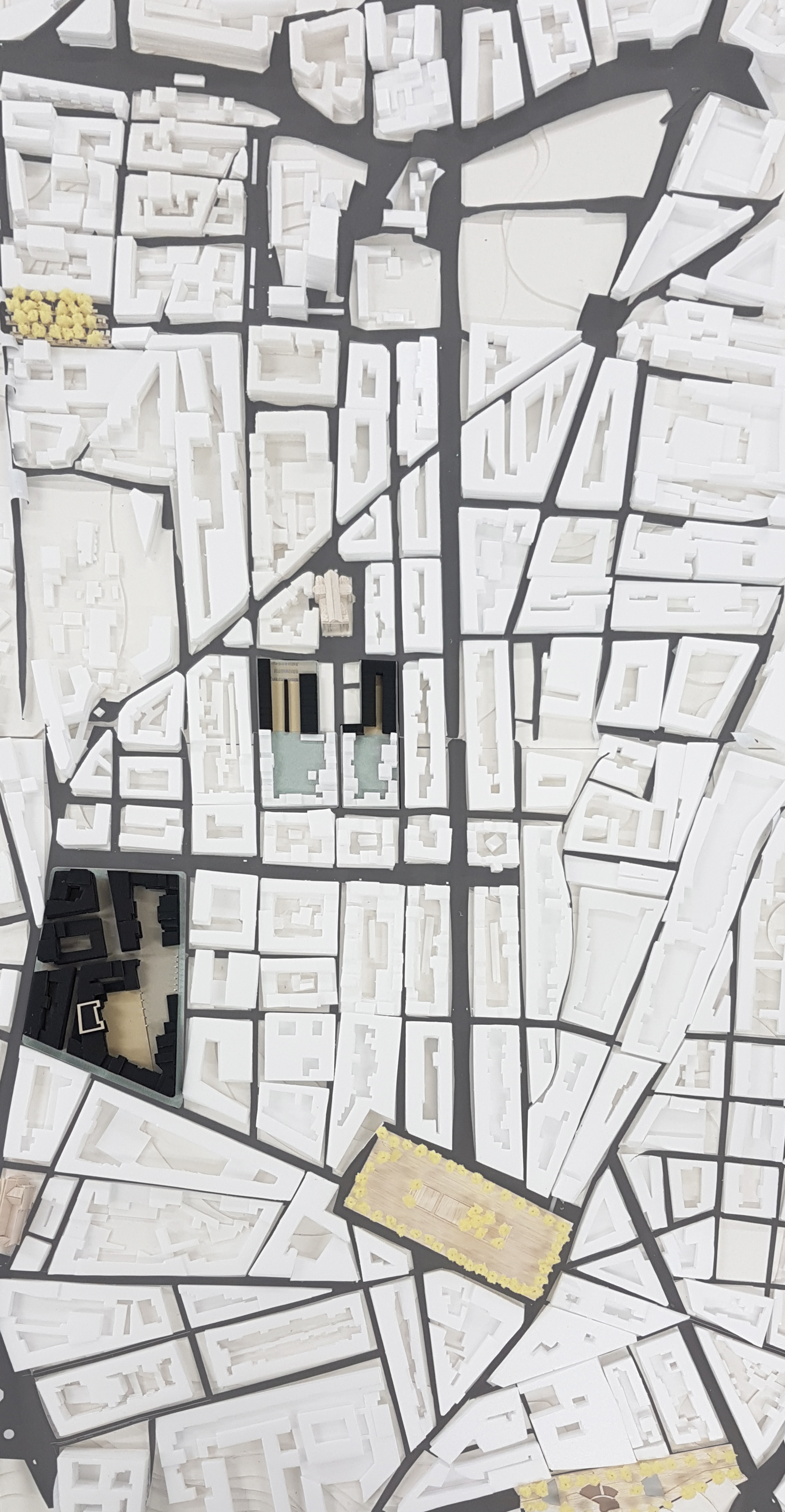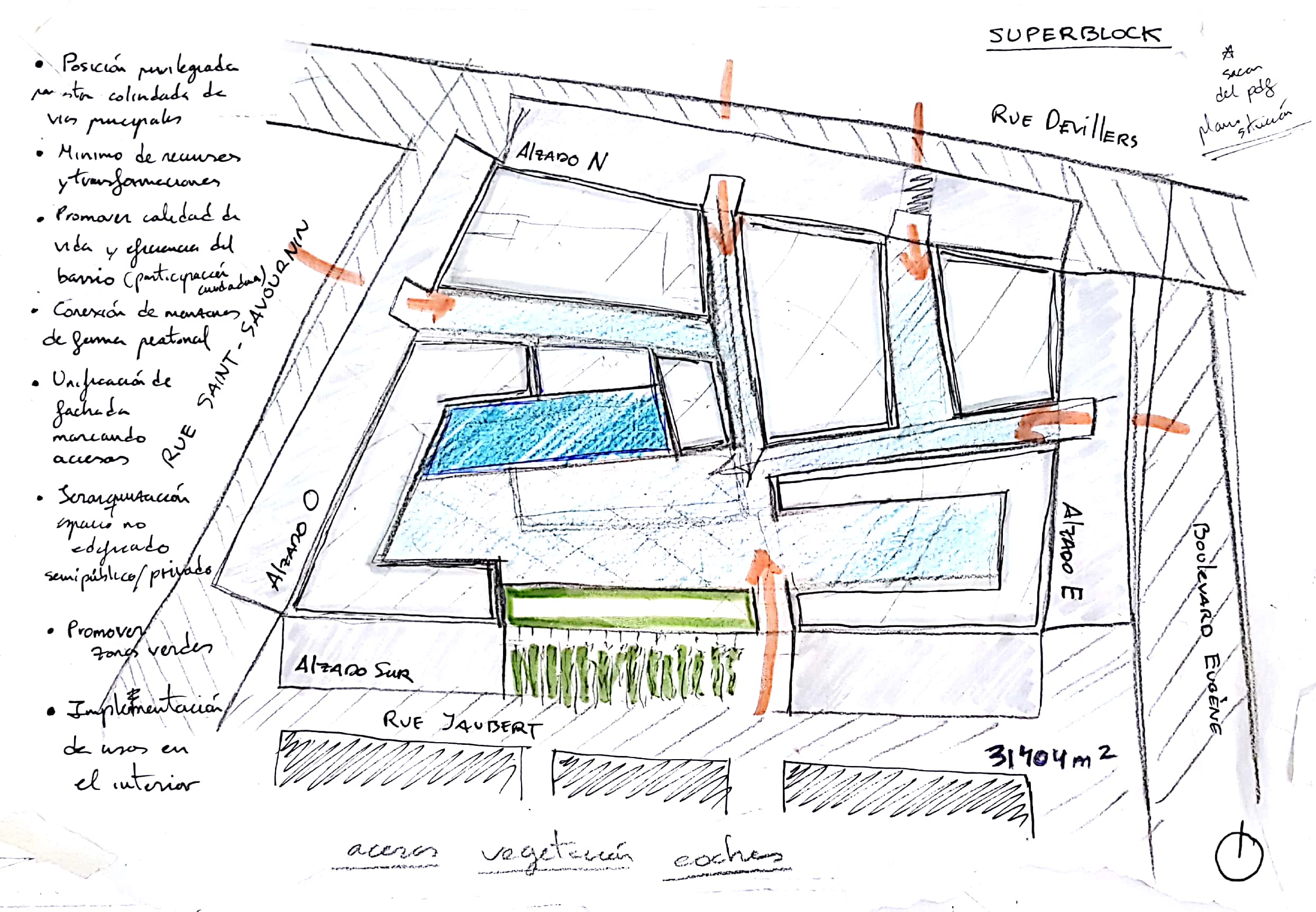 lo que me gusta mas de la propuesta es el superblock donde el espacio publico no se limita a ser cerrado entre los edificios de la manzana sino se abra creando relaciones conexiones muy interesantes.
