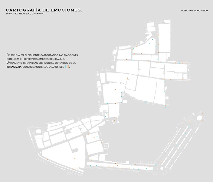 Me parece un buena idea a la hora de mostrar los resultados obtenidos tras las encuestas realizadas, con una cartografía limpia y clara pero no más nada fuera de mostrar los resultados. En esta cartografía no puedo llegar a conclusiones y/o comparaciones de diferentes emociones en este barrio.