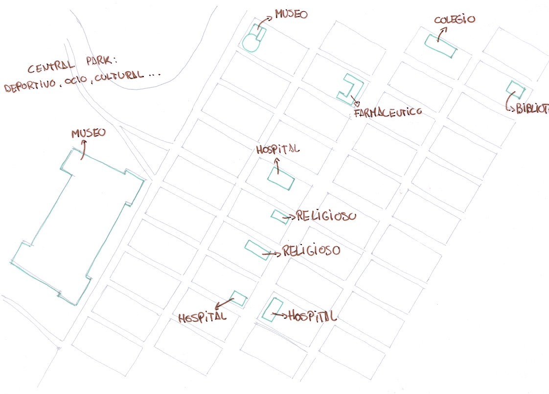 se trataba de dibujar algunos equipamientos en su contexto urbano de una manera más interpretada, sin tener que representar todo el fragmento de la ciudad. en este sentido. no basta solo con localizarlos. te recomiendo revisar los favoritos de los coordinadores del curso.