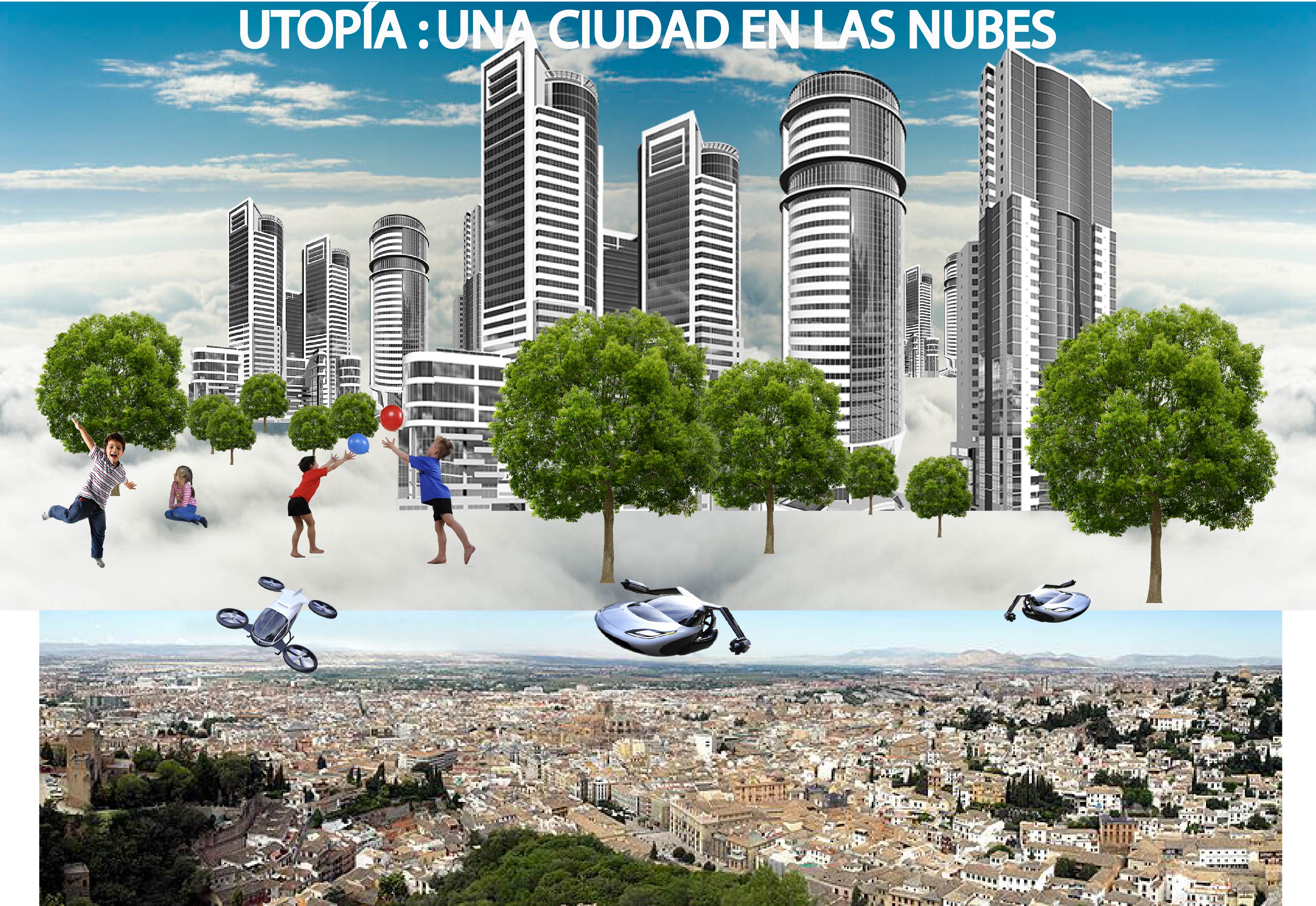 La comunicacion entre la ciudad en la tierra y en las nubes se hará por medio de los coches voladores como ya sabemos. Por tanto, la utopía aquí sería que las nubes fuesen también un medio de transporte.