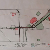 Planta de la urbanización en 1:2000 segregada en usos y su relación con las curvas de nivel