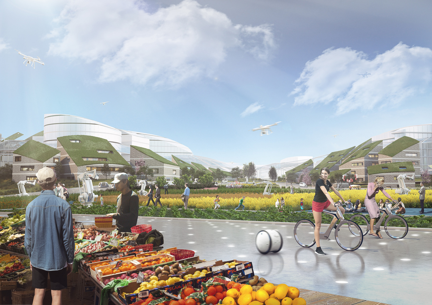 El primer día de clase se reflexionó sobre la ciudad del futuro y todos los compañeros llegamos a una conclusión, esa ciudad debería tener amplias zonas verdes donde la gente pudiese andar e interactuar con las demás personas y el uso de transporte privado fuera nulo.MVRDV ha presentado esta ciudad del futuro, como se muestra, la ciudad contendría una gran superficie de espacio verde que integraría la arquitectura en el paisaje y habría una gran carencia, la gran superficie que se comen las carreteras en cualquier ciudad aquí ese espacio se usa para generar zonas colectivas y el transporte de mercancíassería mediante drone.Otro concepto propuesto es el de supermanzana, esta población contendría todos los servicios y toda la industria necesaria para poder abastecerse, trabajar, divertirse entre otras muchas cualidades. La zona estaría comunicada con una sola línea de metro con la ciudad más próxima.