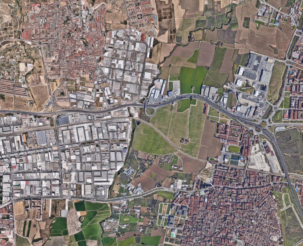 Trabajando en la zona del arroyo del Juncaril, que limita los municipios de Albolote y Maracena, se quiere recuperar el borde fluvial, cuyo ancho varía a lo largo del recorrido retranqueando los límites existentes que lo bordean, en especial en la zona del polígono ,generando un recorrido simultáneo tanto en la cota del polígono como en el arroyo, previamente adecentado con pequeñas intervenciones como la creación de un camino paralelo y control de la vegetación. Destaca la nueva fachada del polígono, sustituyendo edificios medianeros con el arroyo por edificios terciarios y dotaciones como un pabellón polivalente. Esta actuación se repite pasada la autovía, recuperando el verde inexistente. El encuentro con la autovía se soterra reforzando el eje del proyecto; en la actualidad impide el paso de una zona a otra discurriendo el arroyo bajo la misma. También eliminamos el tráfico y los problemas que generan las numerosas retenciones a lo largo del día.