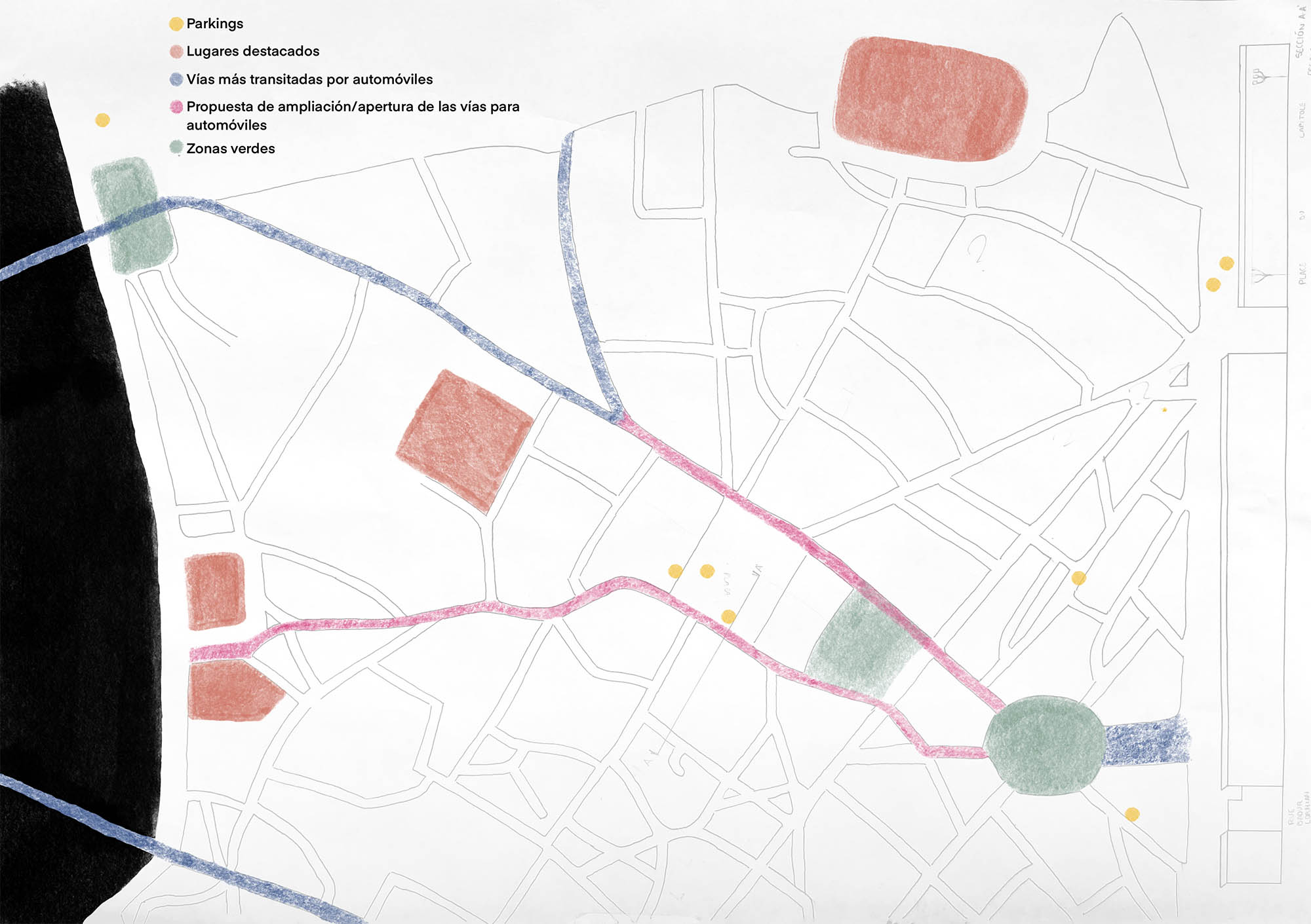Reflexionando acerca de qué podría beneficiar a la ciudad hemos llegado a la conclusión de ampliar/abrir avenidas que permitan un tráfico rodado más fluido y cerrar otras que tendrán acceso exclusivo para peatones. En estas últimas se pretenden incluir huertos urbanos y otros elementos que hagan más atractivo el paseo por la ciudad.