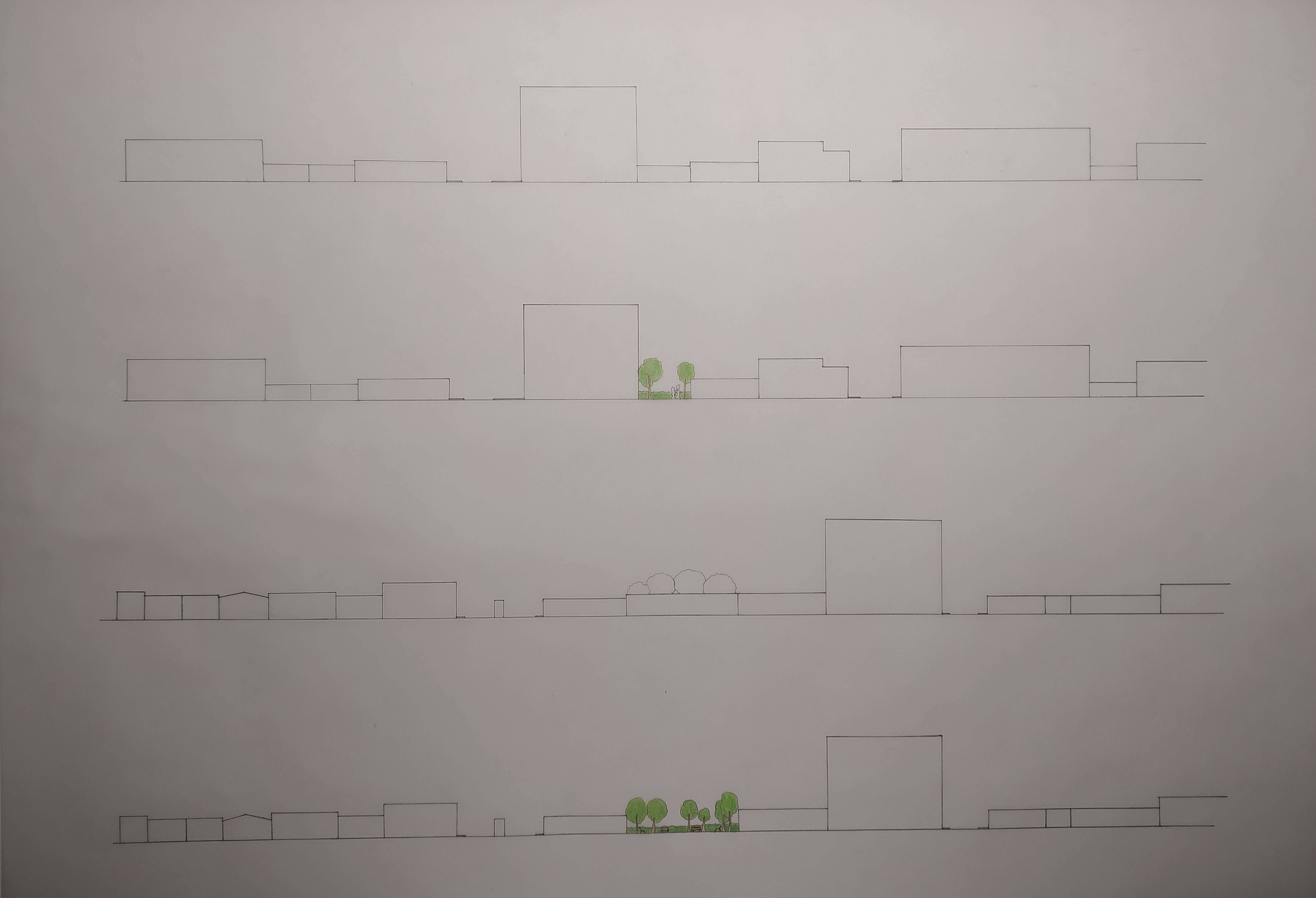 Hemos observado que en Barranquilla no existen muchas zonas de parque para que la gente pueda reunirse y relajarse. Analizando la ventana, hemos visto que hay algunos edificios que están bastante en ruinas o zonas descampadas sin un uso concreto. Proponemos tres parques uniendo la zona de la catedral con la del paseo Bolívar, ya que pensamos que será un sitio de bastante tránsito, para que no sea una zona tan densamente edificada y la gente tenga un sitio más tranquilo en el centro de la ciudad y a la vez damos una nueva vida a estas manzanas que ahora mismo no están cuidadas.