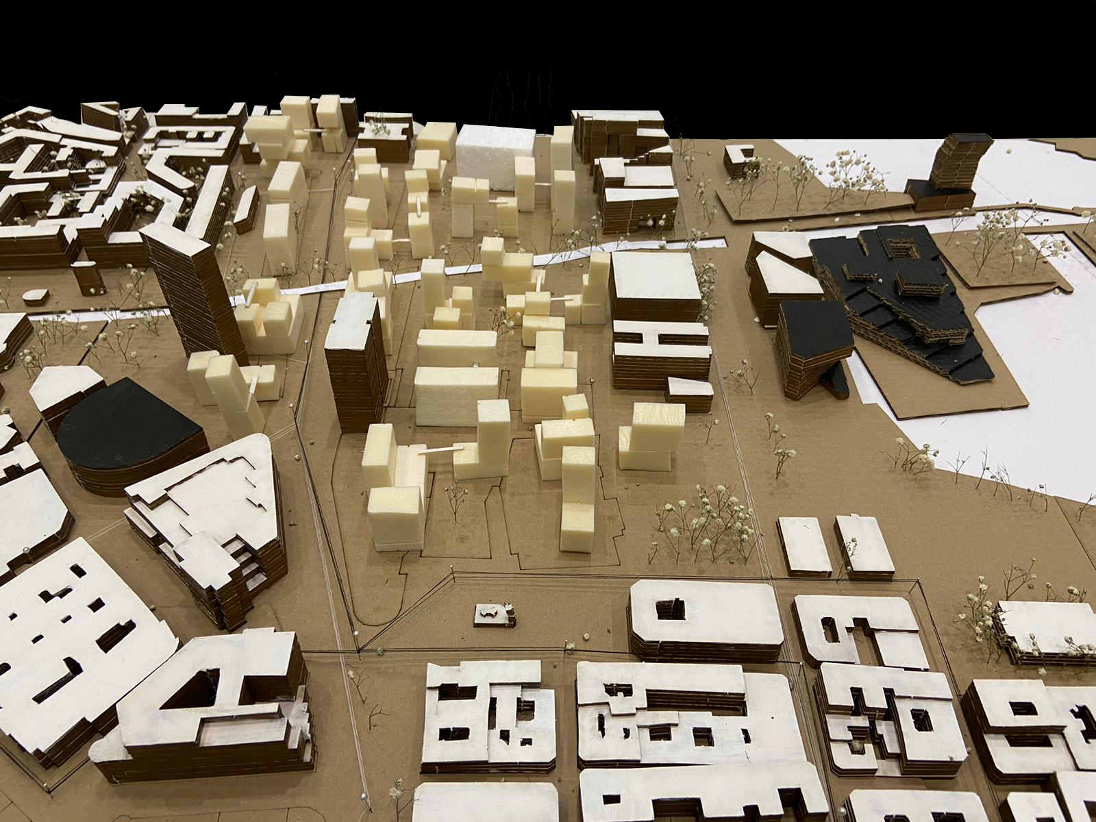 Me parece interesante la solución planteada en cuanto a esa pantalla que dividía la ciudad con la idea híbrida de espacio público y privado conectado a través de pasarelas, además de comprenderse bastante bien con la representación en maqueta y la distinción de esos usos en dos colores, pero pienso que a lo mejor se podría haber apoyado con algún croquis o fotomontaje que ayudase a comprender aún mejor la idea utópica.