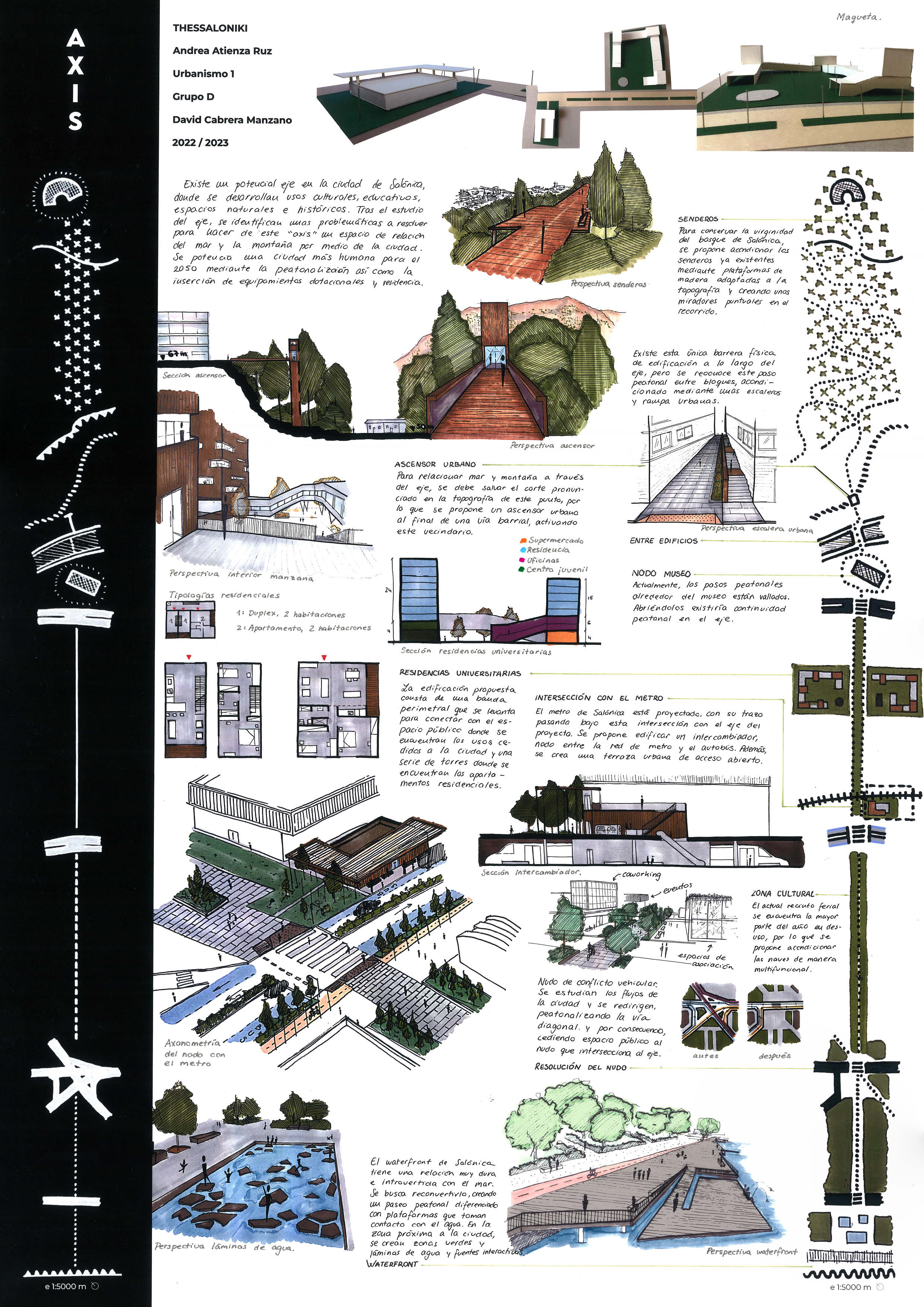 Se estudia en detalle un potencial eje de la ventana de la ciudad, conectando mar y montaña a través de la ciudad y se proponen mejoras en los puntos de conflicto hallados. Además, se añaden nuevos usos acorde al estudio realizado y las necesidades encontradas para la ciudad de Thessalonica 2050.