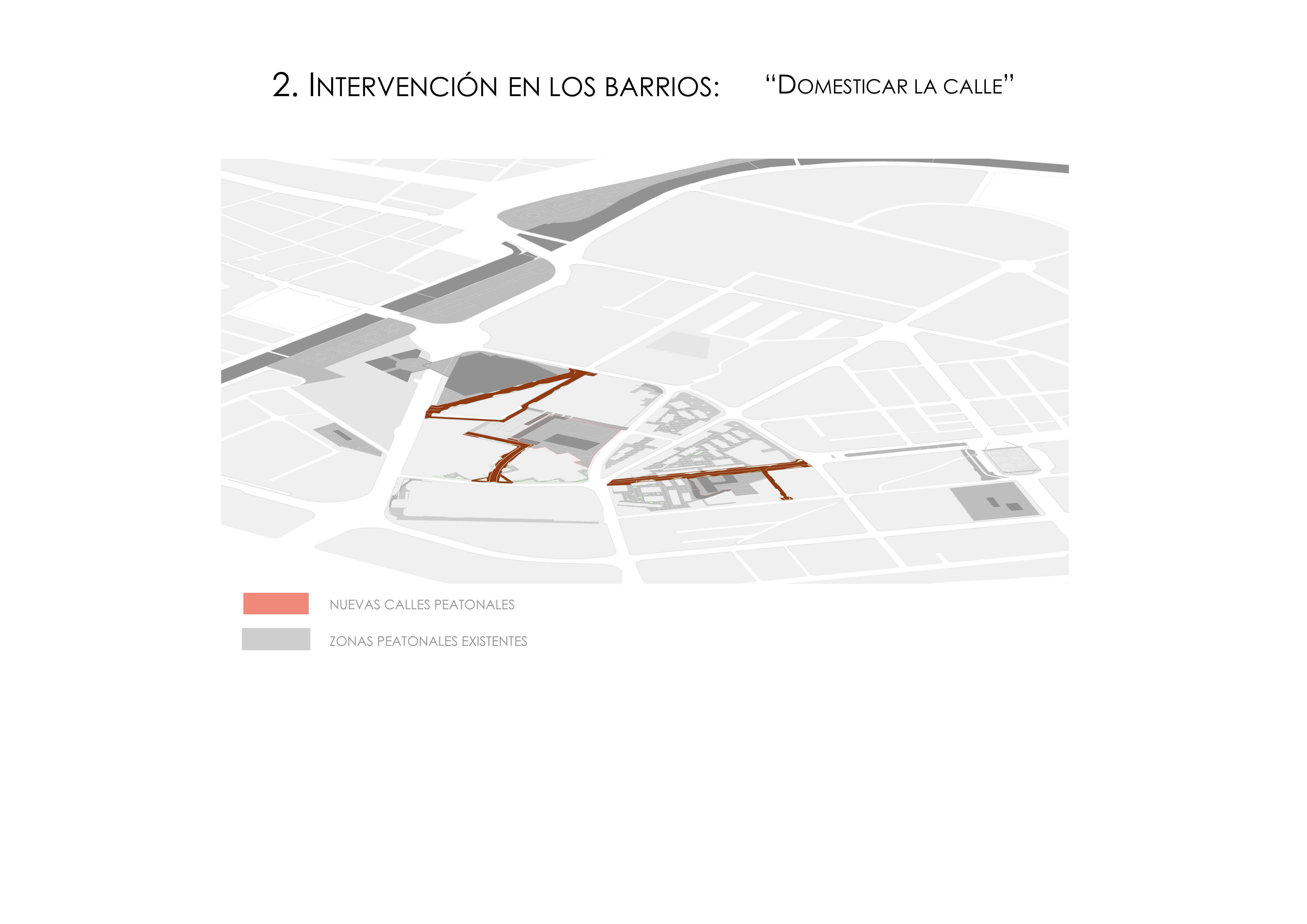 Se trata de acercar el río y sus actividades a los barrios cercanos del distrito Zaidín. Para ello transformamos los colegios públicos Parque de las Infantas y Andrés Segovia en focos de actividad, creando un eje de vida que termina en el río. En segundo lugar, creamos barrios-jardín en torno a estos colegios donde los niños puedan jugar libremente, sin preocuparse por el tráfico. Por último, creamos nodos que conectan todos los barrios-jardín entre si y con el río, mediante mobiliario que abstrae los elementos del concepto "descansar junto al río"