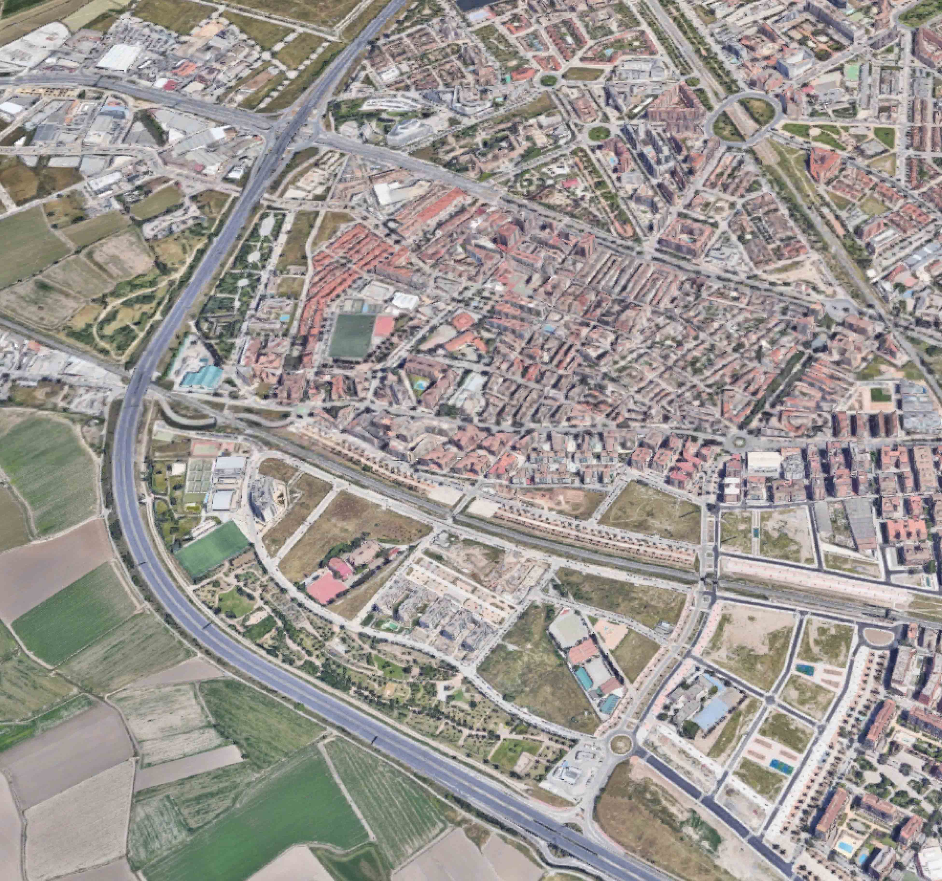 Hemos marcado los elementos que forman los trazados dentro de nuestra ventana, como son las vías de ferrocarril, las calles y carreteras principales, las acequias... marcando las jerarquías y relación entre ellos.