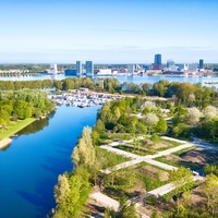 Para un posible aumento de población detectamos como problemas la poca conexión peatonal entre diferentes tramos de la ciudad, la concentración del ocio y comercio en solo una zona y el valor actual que tiene la ciudad como para construir nuevas viviendas que alteren el paisaje. A partir de ahí, proponemos un corredor verde que conecta los 2 canales principales que generan un espacio de interacción social y paso peatonal y de bici importante. También, sabiendo que todo el transporte público pasa por una sola calle, extendemos el comercio y el ocio a una zona nueva, siempre a una manzana de la calle para que así promueva más la movilización en transporte público al tenerlo todo cerca, desapareciendo así poco a poco el vehículo privado. El aumento de población en el centro lo consideramos imposible, así que proponemos la construcción de un nuevo barrio en Almere Hout, en las afueras de la ciudad.