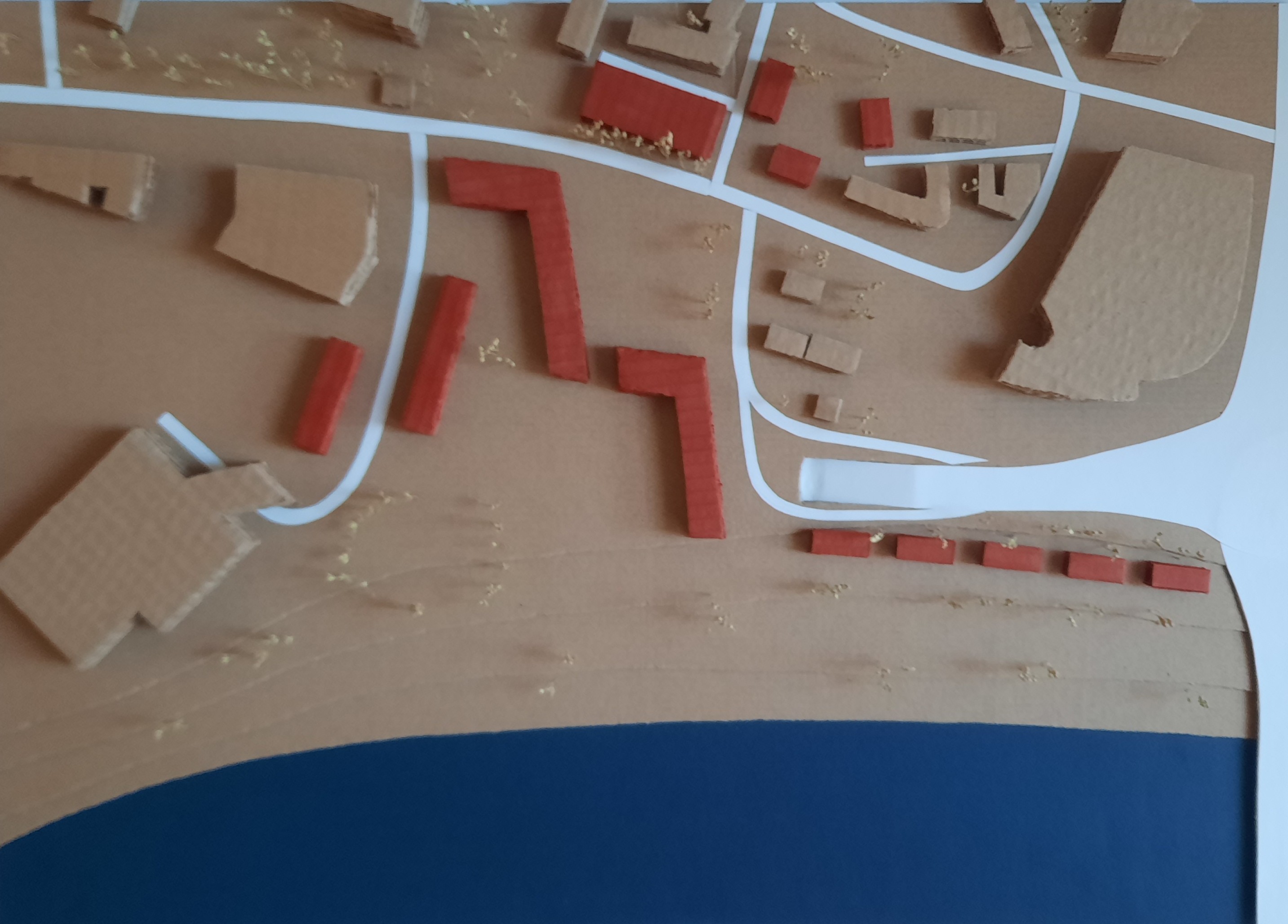 My urban project focuses on mobility and the connection of green spaces. Car traffic inside the district is strongly reduced, creating a mostly car-free zone that works like a pedestrian area, while access for deliveries and emergency services is still possible. Cars are no longer parked on the streets but in two new parking hubs. This improves safety, air quality, and the overall quality of public space. A new school is located in the green center of the district, surrounded by open spaces and calm streets, and acts as a new social focal point. The highway near the river is moved into a tunnel, which also allows the integration of a new subway line. This creates a safe and direct connection for pedestrians and cyclists to the river. The riverfront is transformed into a public park with seating steps leading down to the water and a natural, gently sloping river edge. Sports and playground areas are integrated to offer different activities for all age groups. New mixed-use buildings frame the park, with shops, restaurants, and services on the ground floor and housing on the upper floors, bringing life and activity to the waterfront.