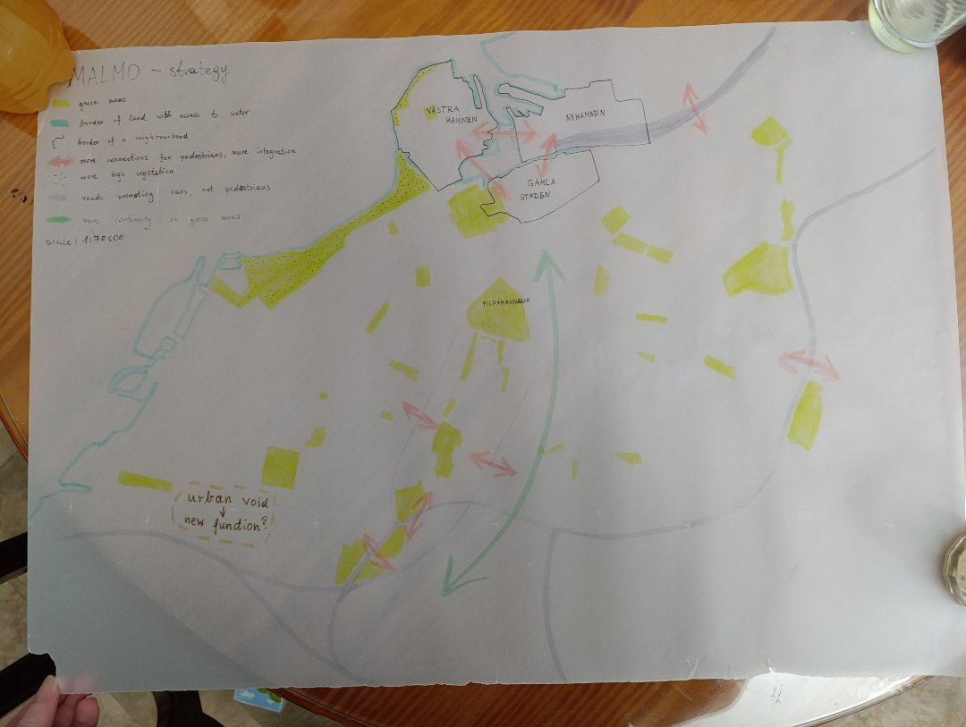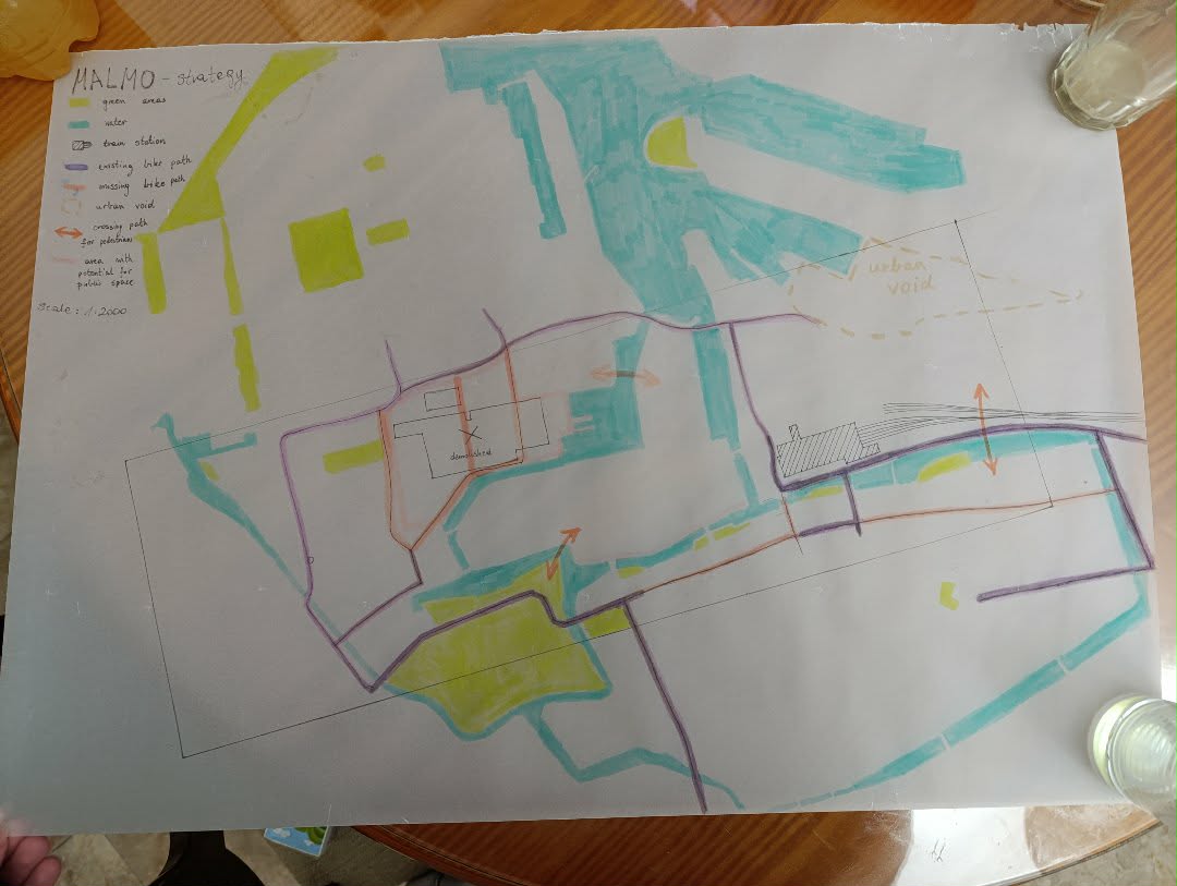 At the 1:70,000 scale, the urban strategy focuses on overcoming existing urban barriers and strengthening spatial continuity within Malmö. The proposal aims to create a cohesive network of green and blue infrastructure by integrating urban green spaces with waterfront areas and surrounding landscapes. Physical and perceptual barriers are reduced through improved connections for pedestrians and cyclists, allowing green corridors to extend across districts and towards the water. This strategic approach enhances accessibility, ecological continuity, and the relationship between the city, its green structure, and the waterfront, supporting a more connected and resilient urban environment.