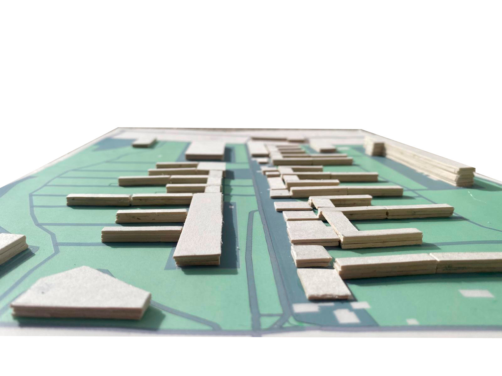La intervención propone la creación de un nuevo barrio residencial con equipamientos públicos. La ordenación se estructura en forma de espina a lo largo del eje principal, conservando la mayor parte de los equipamientos industriales existentes. De manera paralela, se generan dos espacios públicos situados a ambos lados del eje.