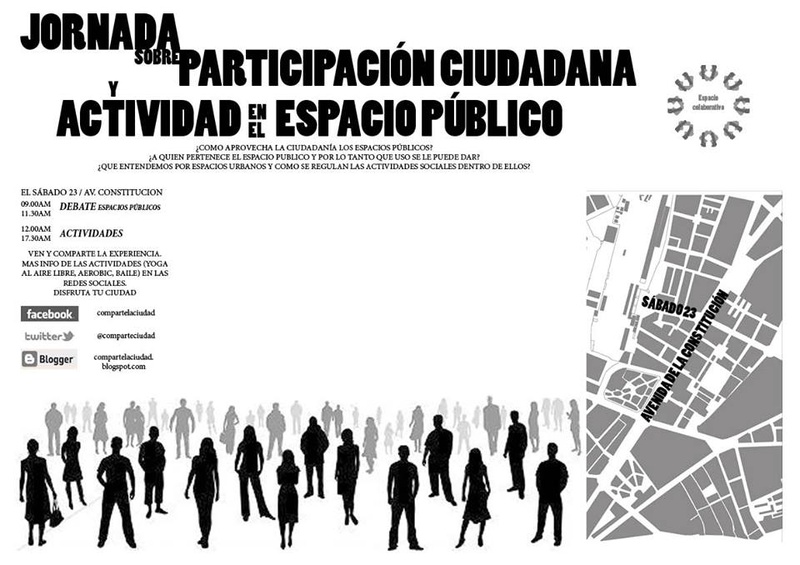 Al principio habrá un debate sobre uso del espacio publico, su regulación y restricciones.(9.00a.m.-11.30a.m.) y a partir de las 12.00 a. se organizarán actividades por y para la gente, talleres, juegos, actividades, debates: disfrutar del espacio publico.
