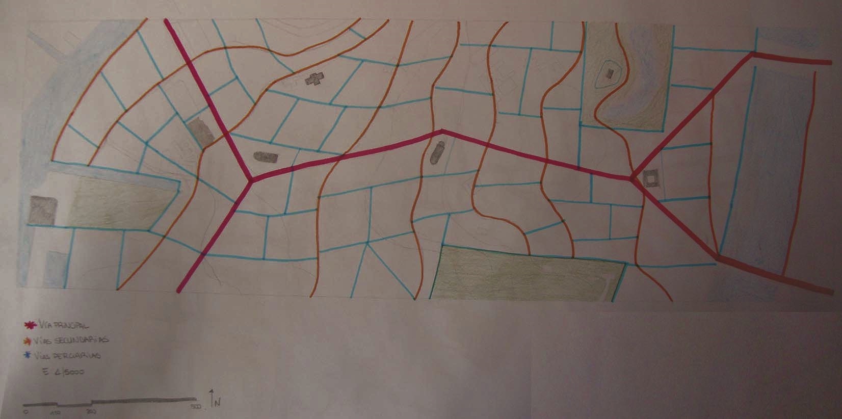Sección escogida porque es la que más variación de vías muestra y en la que enseñamos una esquemática distribución de la parcela.