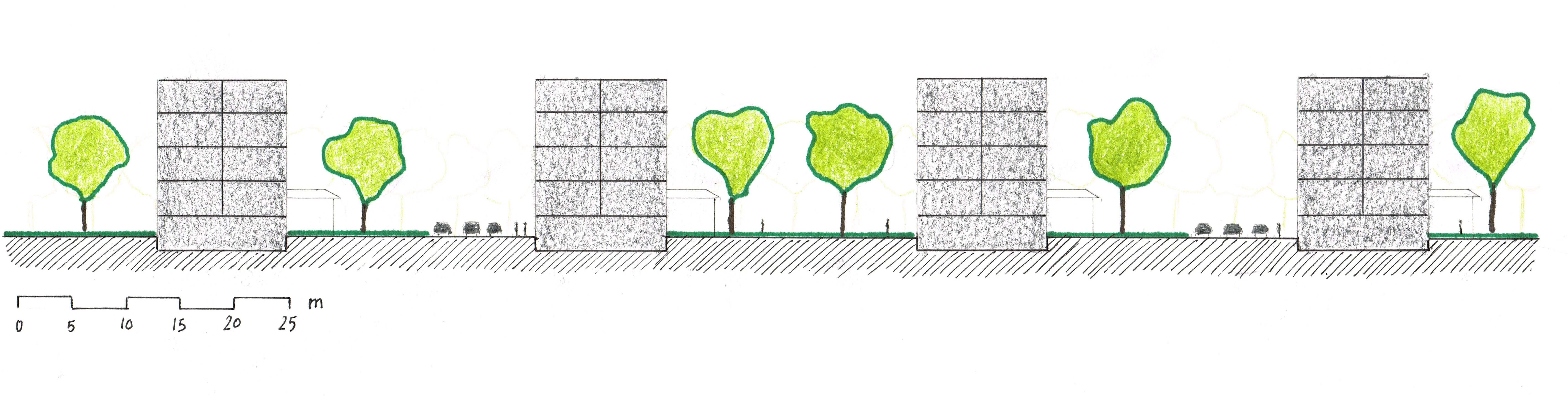 Entiendo que los "parques colectivos", a los que te refieres, son lugares semipúblicos, ligados a edificaciones y probablemente con "dueño". ¿Es así? Ese matiz que has hallado resulta muy interesante, sobre el que merece profundizar: -como se produce la transición entre los dos tipos de espacios -diferenciación de uso y funciones que tienen lugar en cada tipo de espacios -relación con las edificaciones -diferenciar si todas las zonas verdes semipúblicas son semejantes, etc... Por considero necesario en general aportar matices a todas las representaciones: no todas las calles son iguales, marcar esquinas importantes, lugares especiales a lo largo de las calles, edificios que por volumetría, escala o posición resulten singulares, etc.