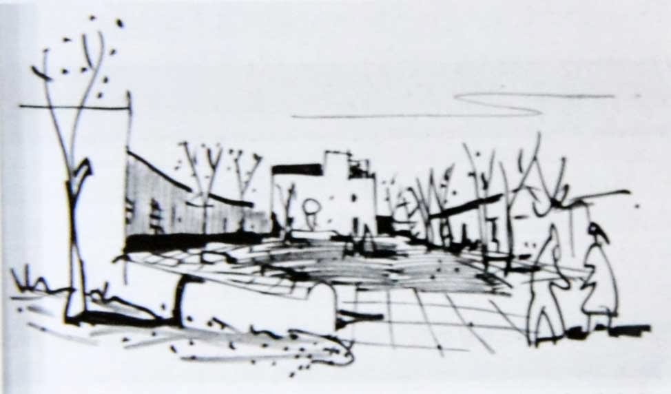 Se escoge un área urbana cercana un tramo de muralla que protege las Termas de Caracalla y un intercambiador ferroviario, rodeado por bolsas de vegetación y arbóreas, en la cual se propone seguir con la densidad media de la zona, constituida por villas ajardinadas, viviendas bajas y edificios de poca altura con mucho espacio colectivo y público entre ellos. Se dispone una trama de casas con jardines privados, una línea de visual creada por varios edificios un poco más altos que dirigen la mirada a la muralla, una conjunción de caminos urbanos para viandantes que confluyen en una bolsa verde interior en las manzanas nuevas, configurando diagonales transitables y visuales verdes.