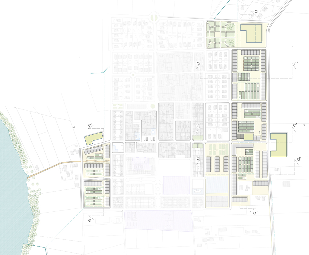 Las viviendas preexistentes se conectan a la trama mediante los ejes secundarios que recogen el flujo del eje principal.