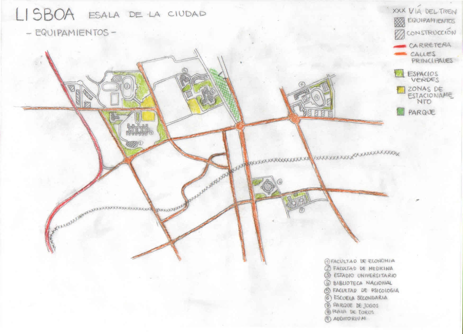 Mia trabajo tiene por objeto subrayar las careteras, distinguiendo entra las primarias y las segundarias y como se relacionan con los espacios verdes y con las viviendas.