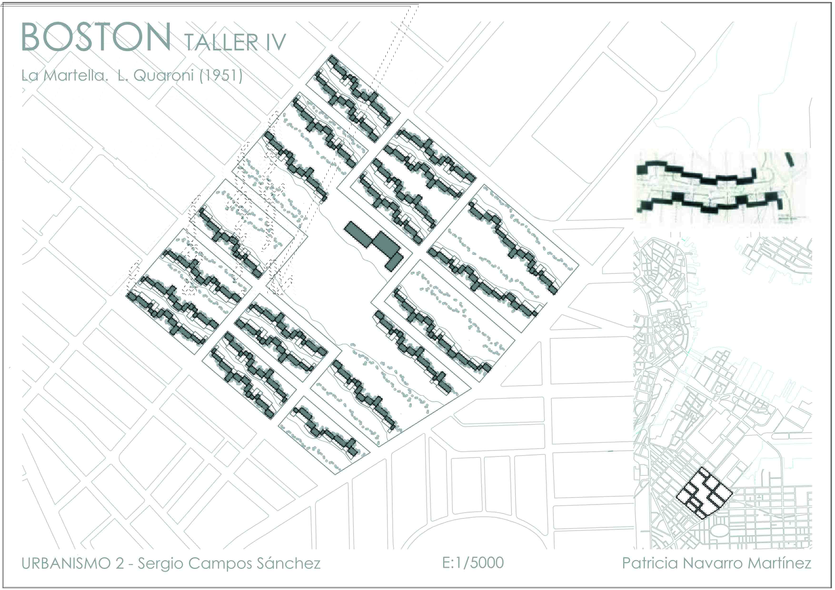 Creación de una manzana y un superblock en la ciudad de Boston tomando como modelo La Martella de L. Quaroni.