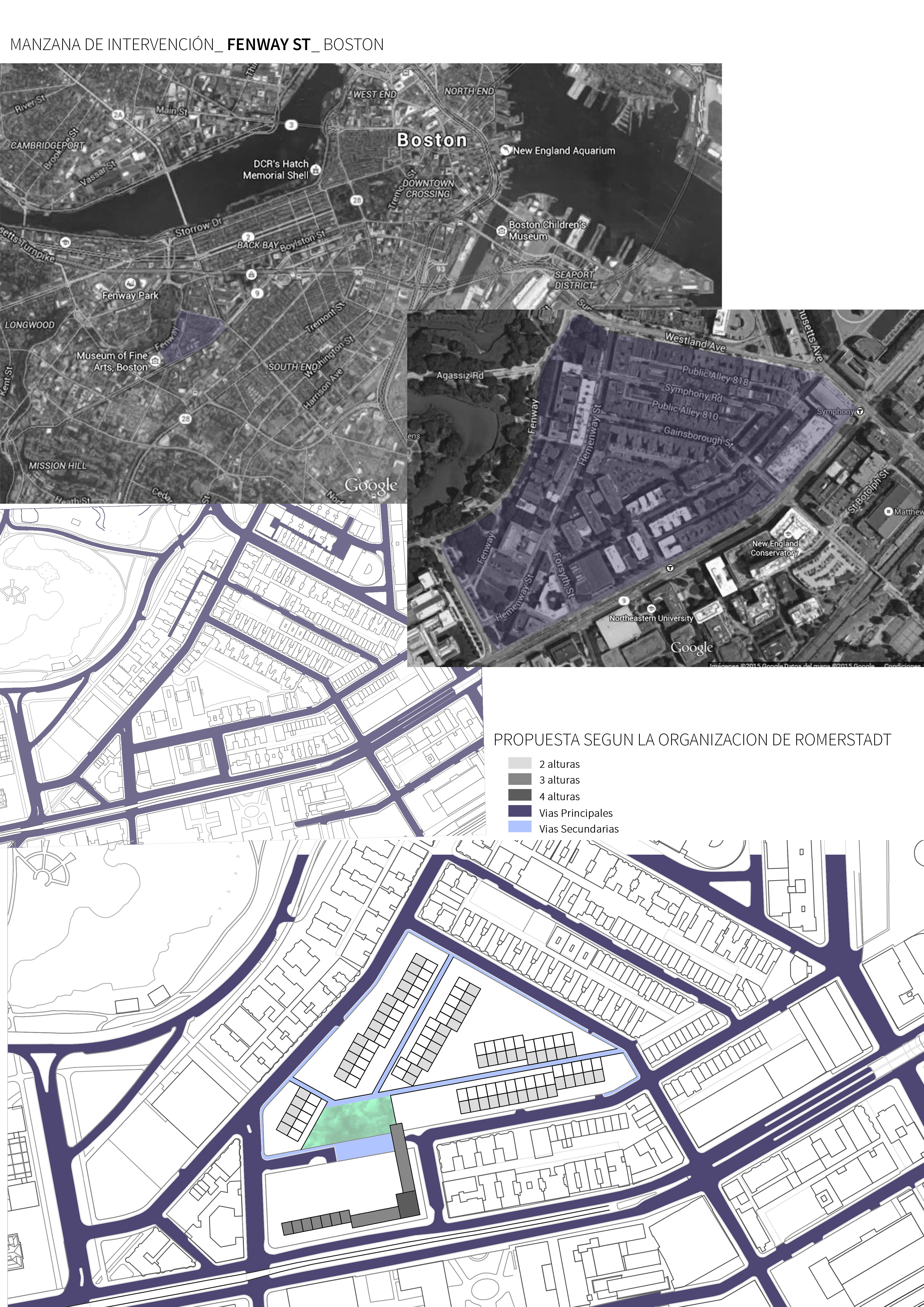 Creación de manzana y superblock en la ciudad de Boston tomando como ejemplo el barrio de Romerstadt en Frankfurt (E. May)
