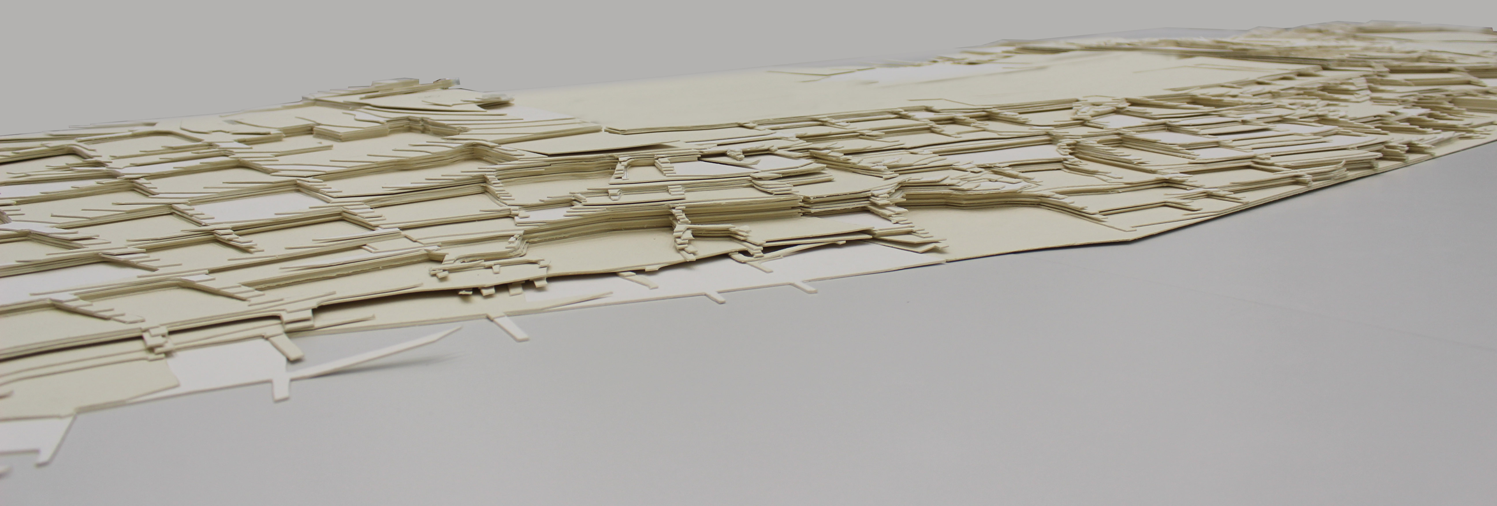 Relación entre la topografía y el plano urbano de la ciudad. Se marcan los diferentes espacios construidos, aun sin definir.