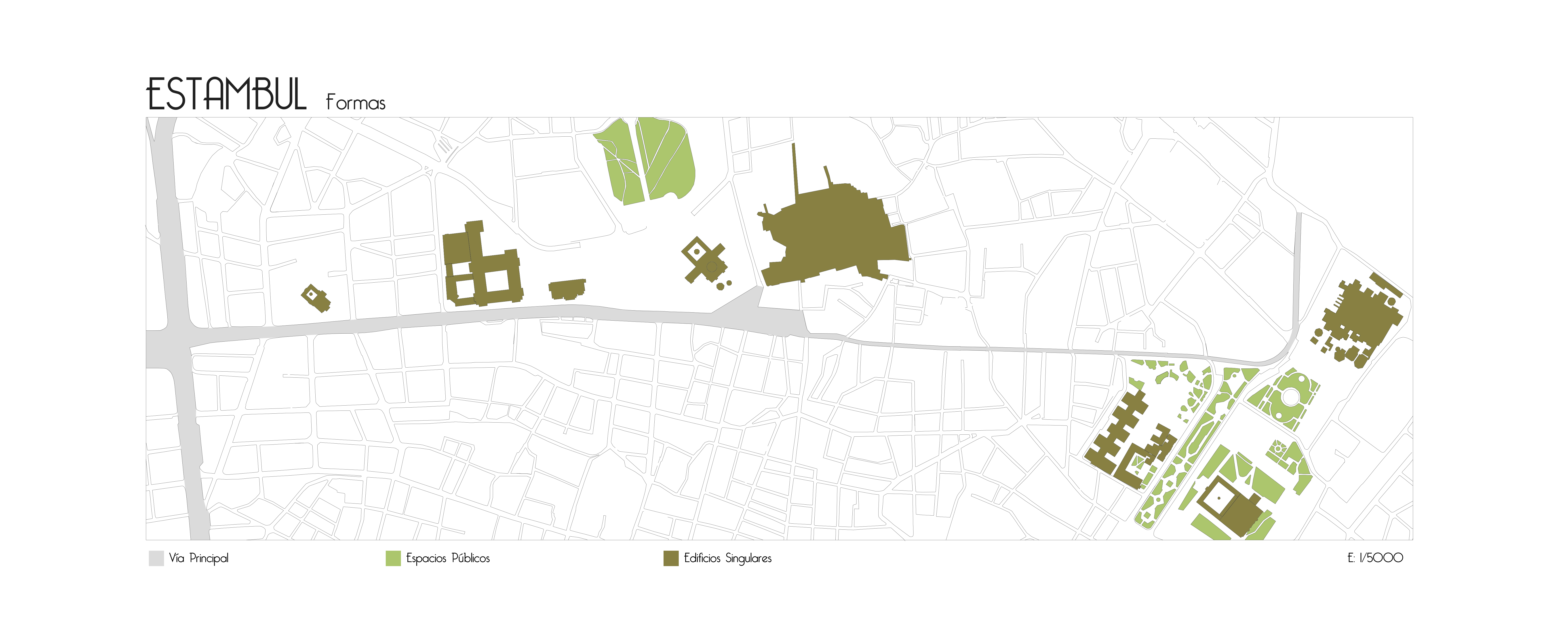 Plano 2400x800 donde aparecen los edificios más importantes así como las calles y los espacios públicos.