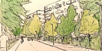 Me parece que es un proyecto interesante que presta atención a diversos factores a destacar como la vegetación, el aumento de población, la cualidad de las calles y la creación de espacios libres cerca de los colegios para aumentar la seguridad. Además, considero que los dibujos permiten conocer la idea que se propone y son muy sugerentes para explicar parcialmente la idea y la relación de la vegetación y las edificaciones. Sin embargo en el primer plano creo que podría haberse aprovechado para explicar también la relación de las nuevas zonas de vegetación con las existente en la ciudad al tratarse de una escala más grande. Por otro lado, también consideraría la posibilidad de incluir en el segundo plano la definición de las vías para comprender la relación entre los tres factores principales (vegetación, viviendas y vías). Por último, añadir que los edificios propuestos parecen muy pequeños lo que puede deberse a un tema de escala.